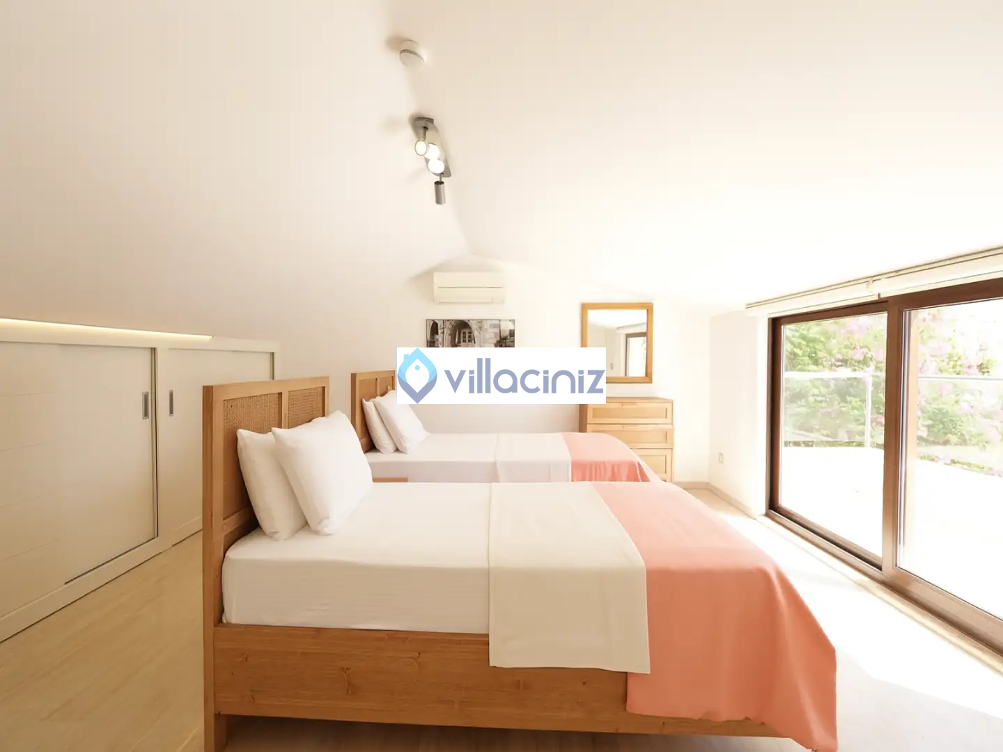 Yatak odası 5: 2 adet tek kişilik yatak, makyaj masası, klima, elbise dolabı, televizyon komodin, tuvalet banyo bulunmaktadır.