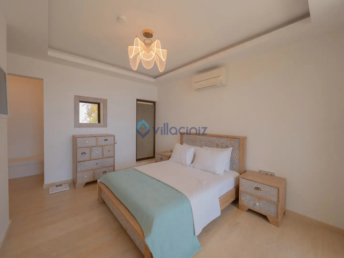 Yatak odası 1: 1 adet çift kişilik yatak, makyaj masası, klima, elbise dolabı, komodin, jakuzi, televizyon, tuvalet banyo bulunmaktadır.