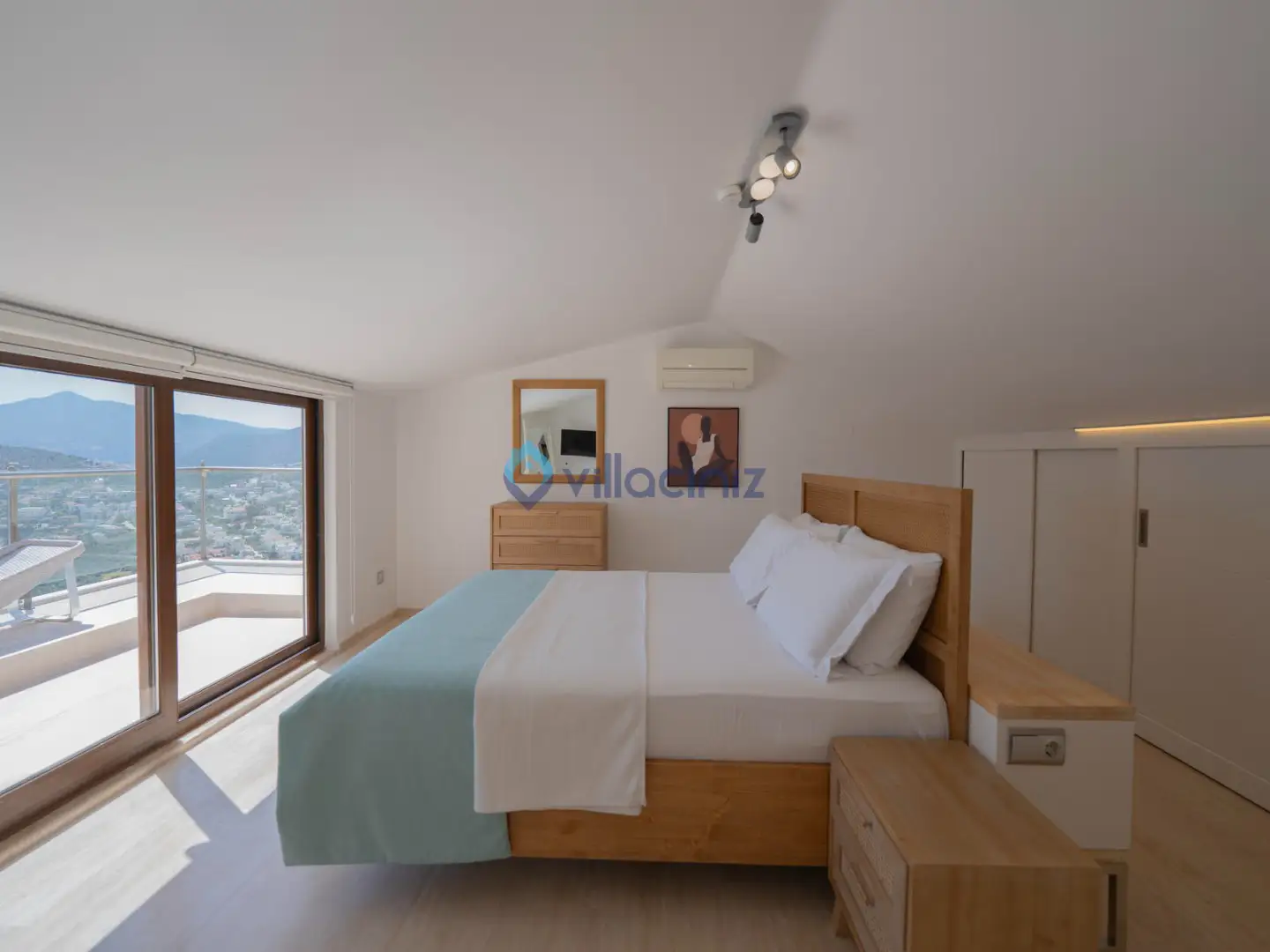 Yatak odası 2: 1 adet çift kişilik yatak, makyaj masası, klima, elbise dolabı, komodin, televizyon, tuvalet banyo bulunmaktadır.