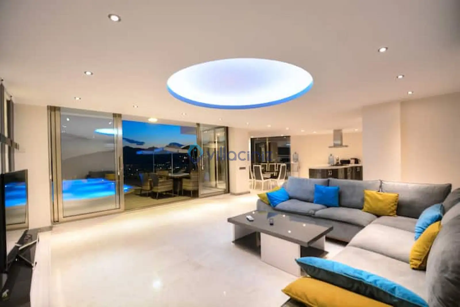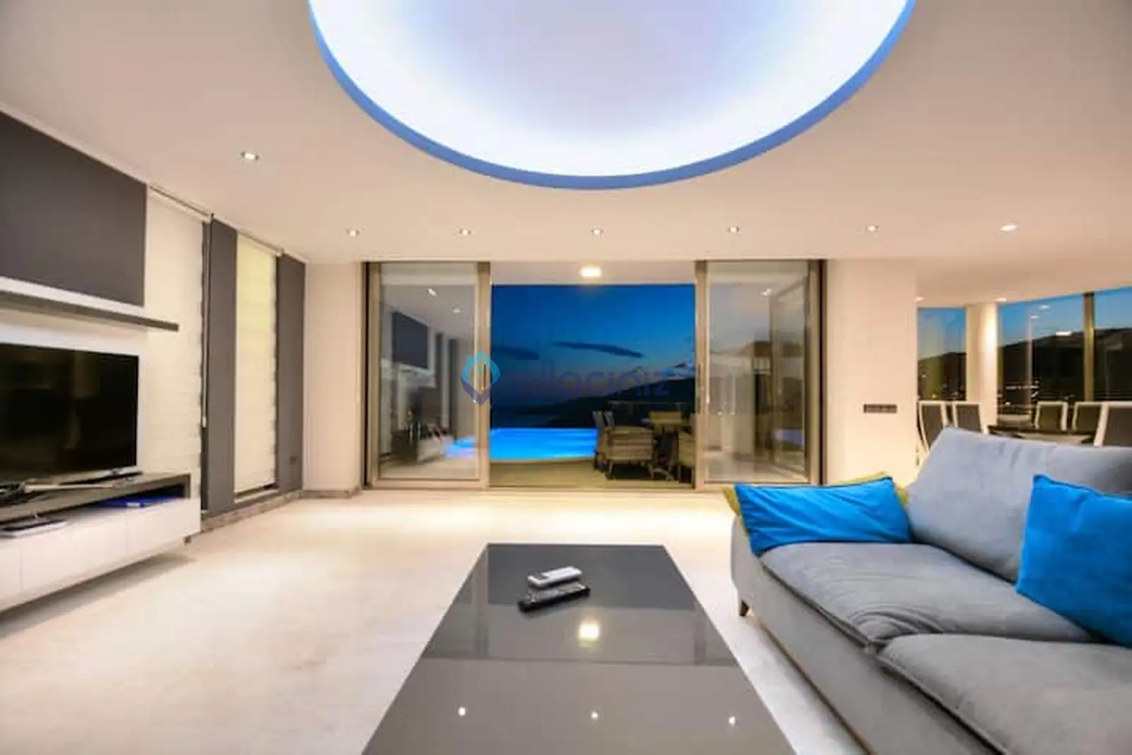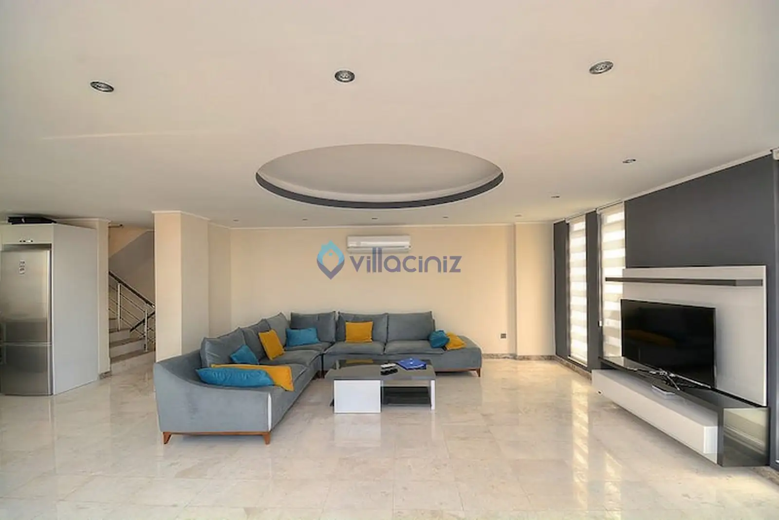 Salonunda oturma grubu, plazma televizyon, uydu alicisi, klima, yemek masasi, havuz terasina çikis bulunmaktadir.