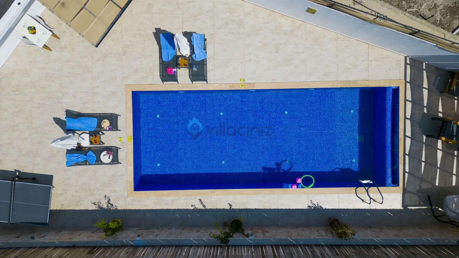 Not: Villanın güneşlenme terası ve havuzunun dış taraftan görünmemesi için gerekli önlemler alınmıştır, fakat villanın diğer bölümlerinin görünürlüğü kesin olarak garanti edilememektedir.