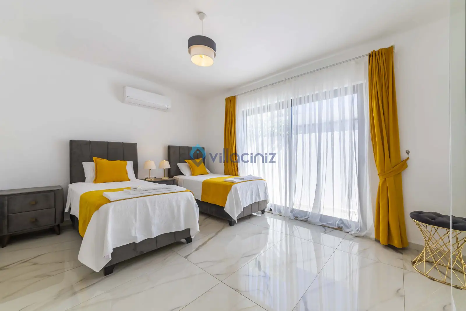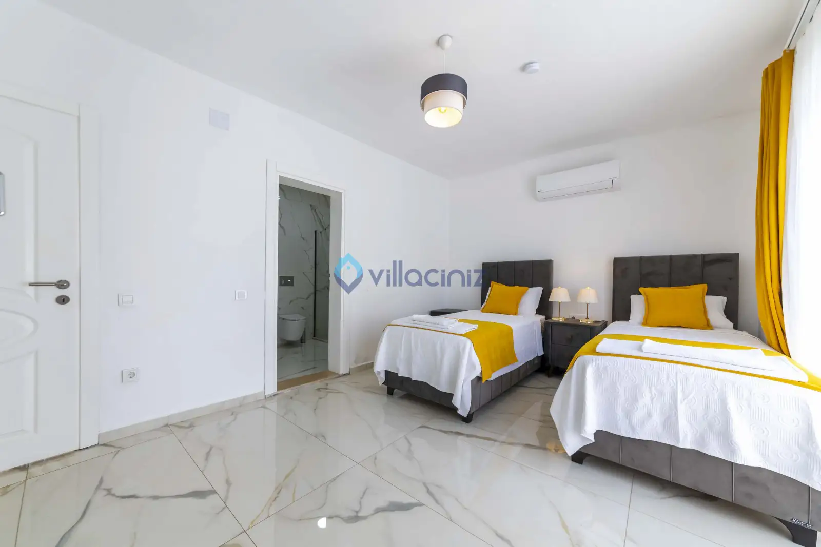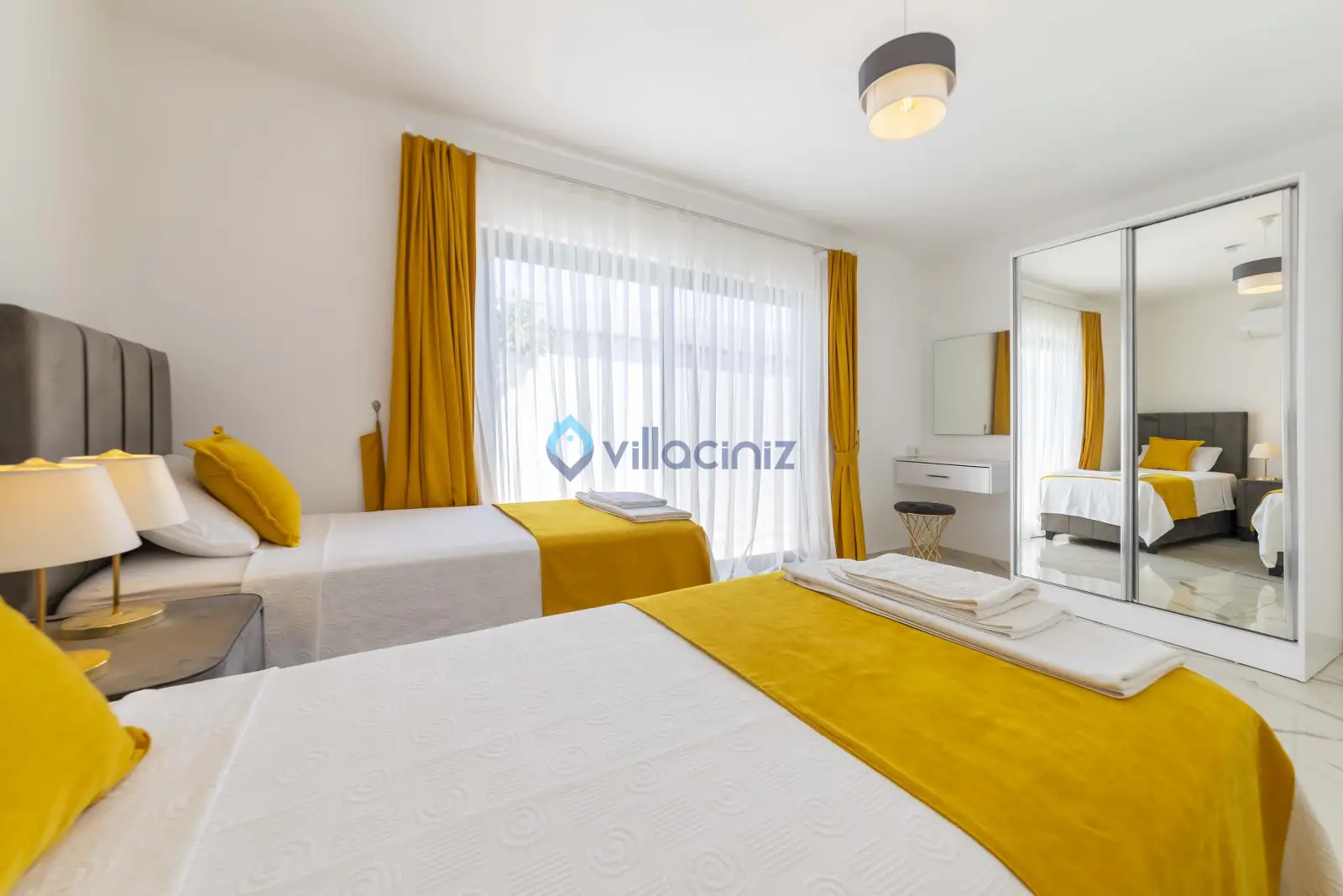 Yatak Odası: 2 adet tek kişilik yatak, klima, komodin, makyaj masası, elbise dolabı, banyo ve tuvalet bulunmaktadır.
