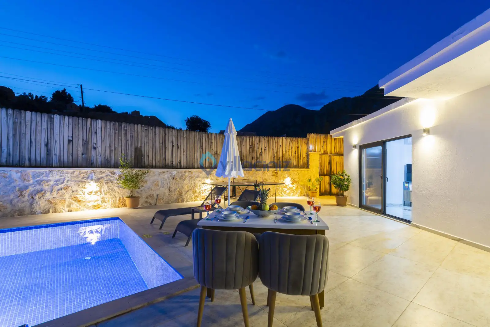 Villa Cengizhan Duo, Kalkan Kördere Mevkiinde 2 yatak odalı 4 kişilik özel yüzme havuzlu, jakuzili muhafazakar kiralık tatil villamızdır. Villamız Kalkan merkeze 5 km uzaklıkta olup merkeze yakuın bir lokasyondadır. Korunaklı havuz terası ile muhafazakar aileler, balayı çiftleri için uygun bir tercih olacaktır. Villa Cengizhan Duo'da ihtiyacınız olan her şey mevcuttur sizlere sadece sevdiklerinizle tatilin tadını çıkarmak kalıyor.