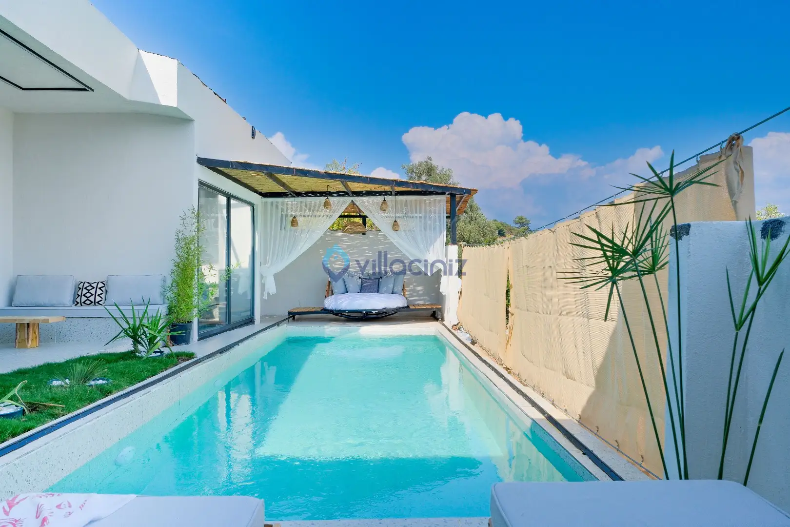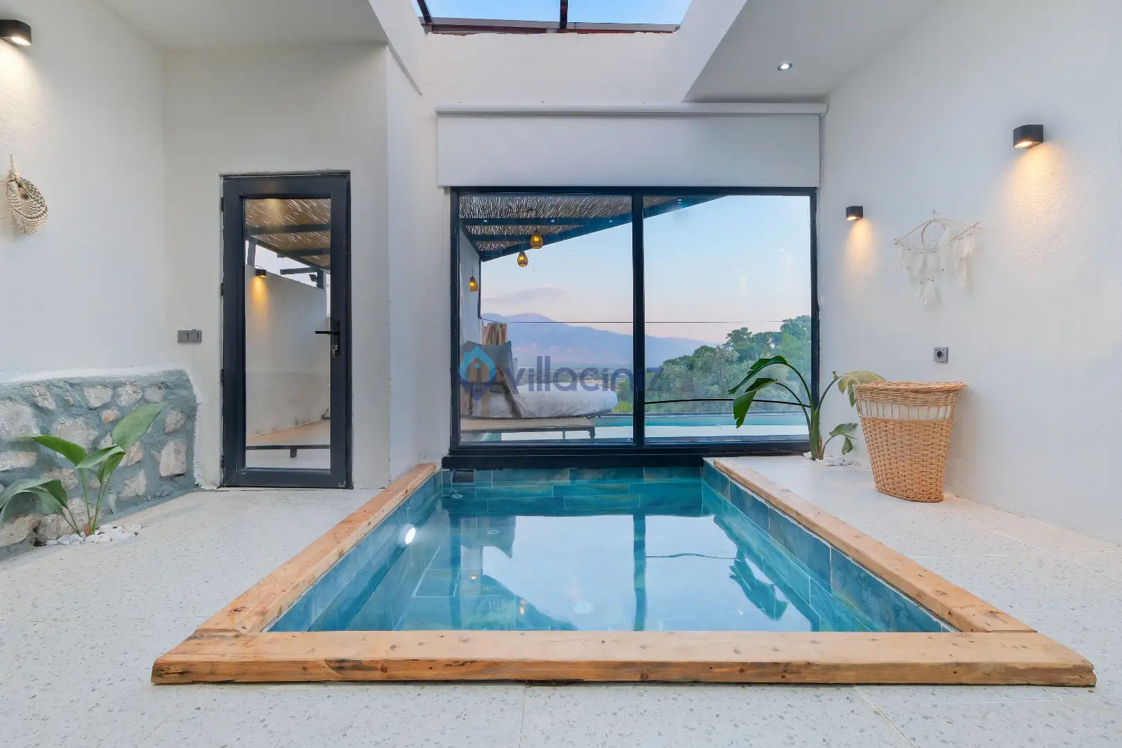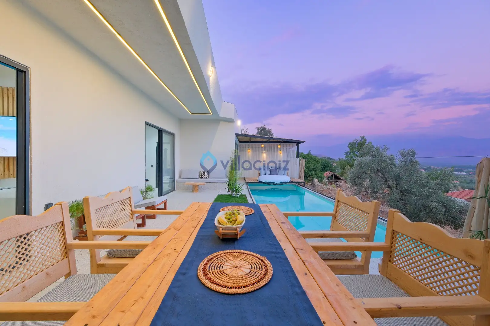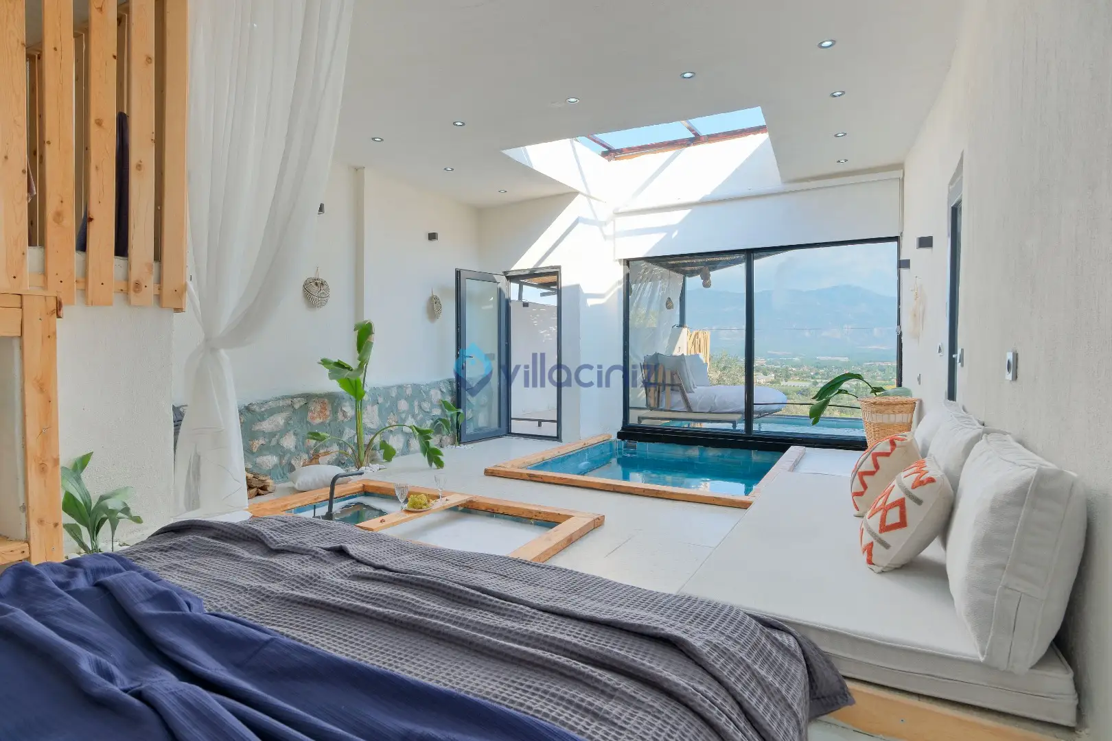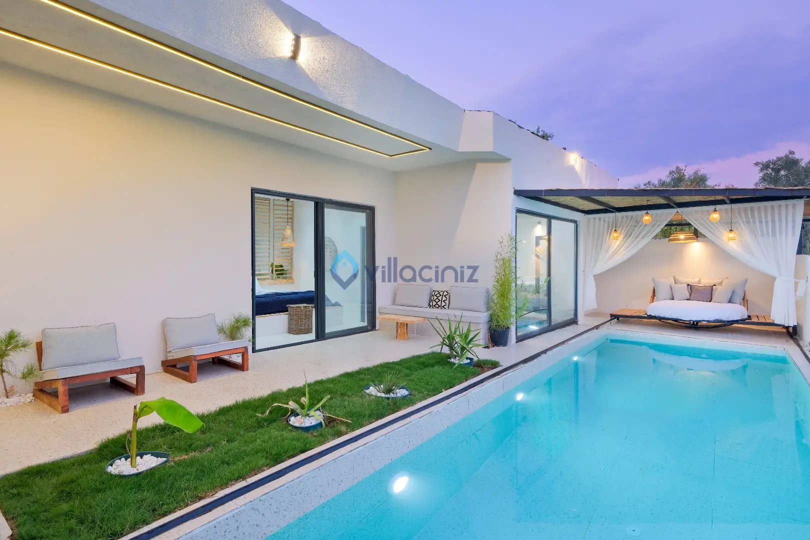 Villa Faye, Fethiye Seydikemer/Eşen bölgesinde bulunan, muhafazakar balayı seçeneğimizdir, doğa içerisinde konumlanan 2 yatak odalı 4 kişi kapasiteli olan Villa Faye, balayı çiftleri ve çekirdek aileler için eşsiz bir seçenek olacaktır. Modern mimarisi ve şık tasarımıyla sizlere unutulmaz bir tatilin kapılarını aralamaktadır. Her mevsim tatilinize uygun olacak şekilde kapalı ısıtmalı havuzu da aktiftir. Villacınız ile keyfinize keyif, anılarınıza anı katacak sizin için tasarlanmış bir villamızdır. Şıklığı ile göz kamaştıran villamız sakin, gözlerden uzak tatil geçirmek isteyen sizler için doğa içinde konumlanmıştır. Yorgunluk ve stresinizden tamamen arınabilmeniz için yatak odasında bulunan jakuzi de tüm yılın yorgunluğunu atabilirsiniz.