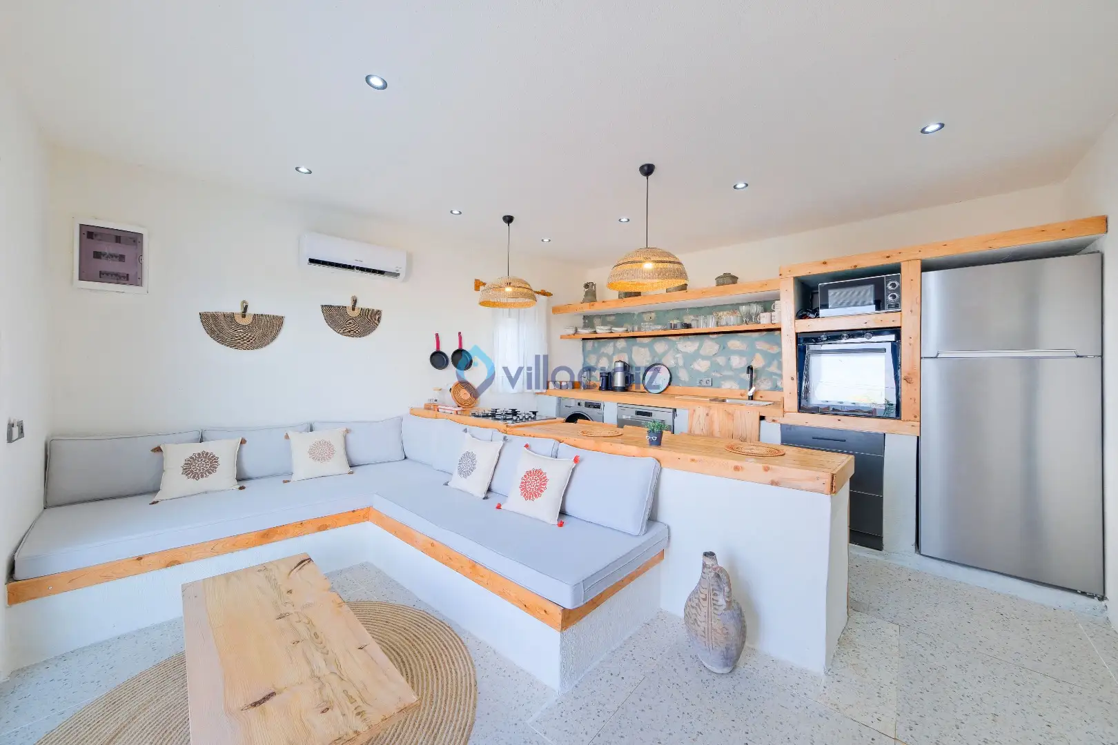 Oturma grubu, plazma televizyon, uydu alıcısı, orta sehpa, havuz alanına çıkış bulunmaktadır.