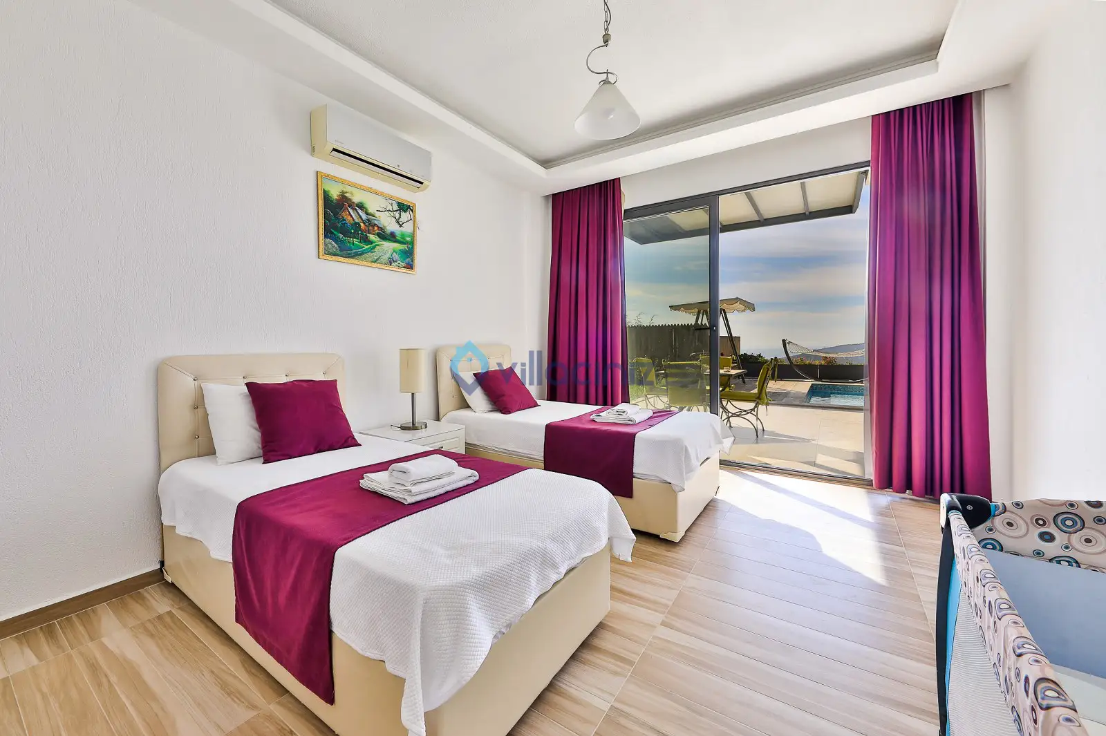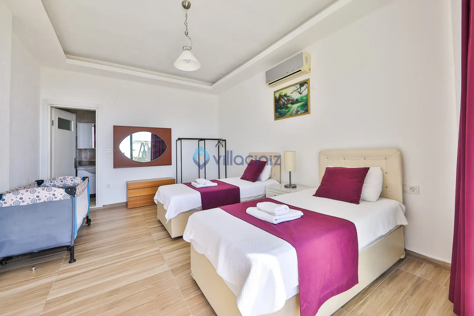 2. Yatak Odası: 2 adet tek kişilik yatak, klima, komodin, makyaj masası, elbise dolabı ve banyo tuvalet bulunmaktadır.