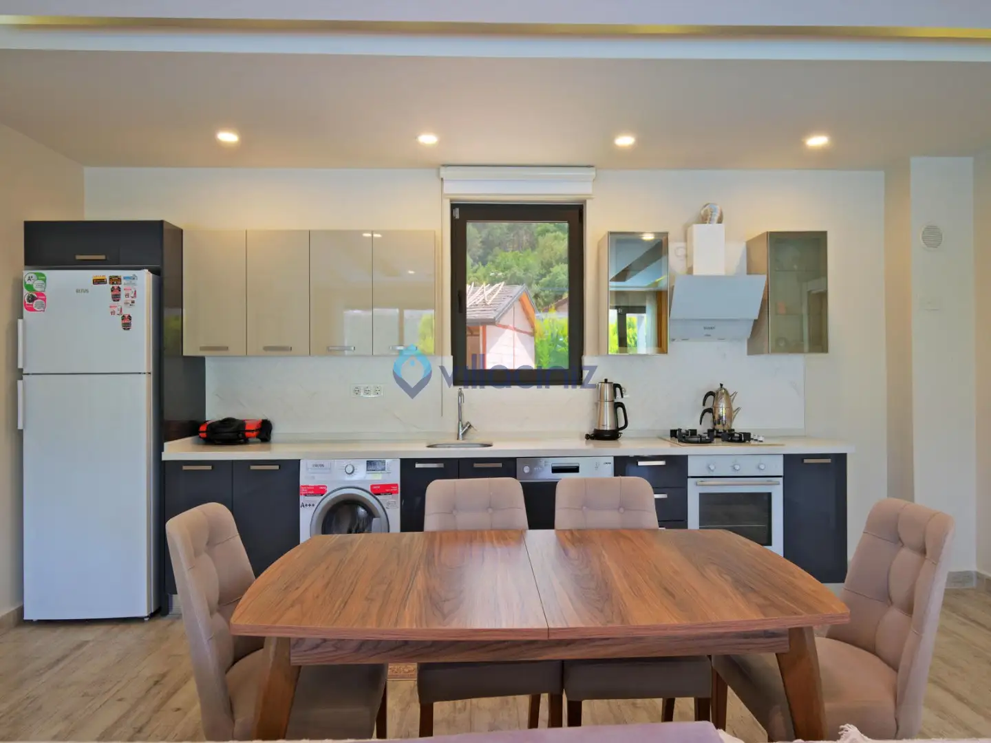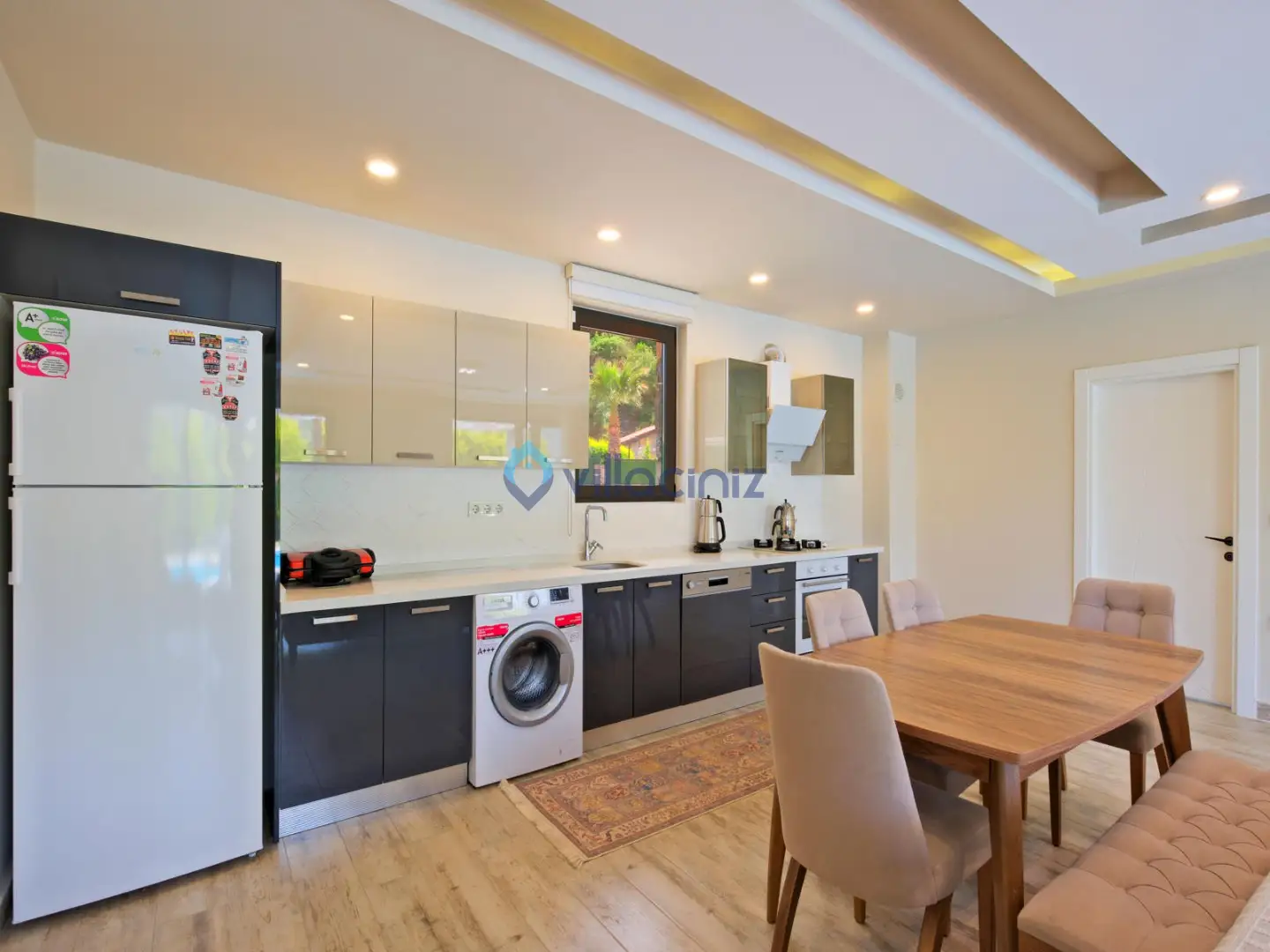 Buzdolabı, çamaşır makinesi, bulaşık makinesi fırın, mikrodalga fırın, 4 lü ocak, ketle, tost makinesi, yemek masası ve 4 kişi için mutfak takımı bulunmaktadır.