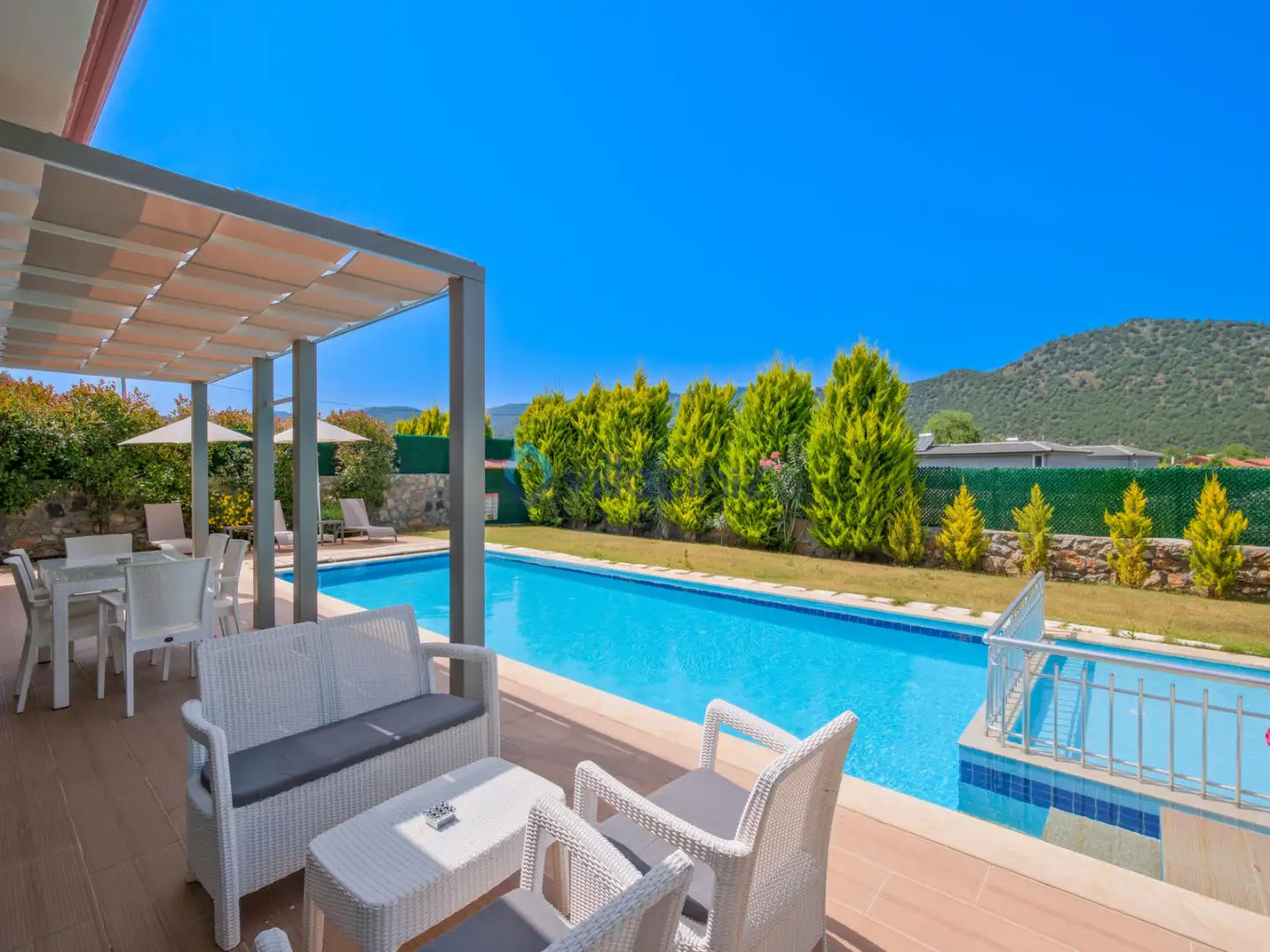 Villanın güneşlenme terası ve havuzun dış taraftan görünmemesi için gerekli önlemler alınmıştır, fakat villanın diğer bölümlerinin görünürlüğü kesin olarak garanti edilememektedir.