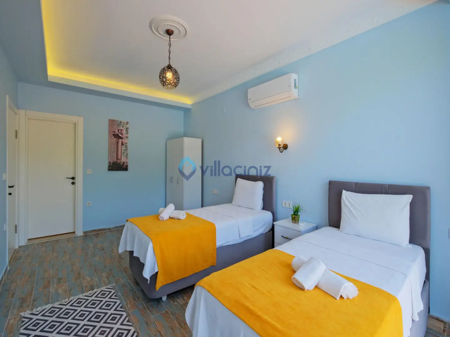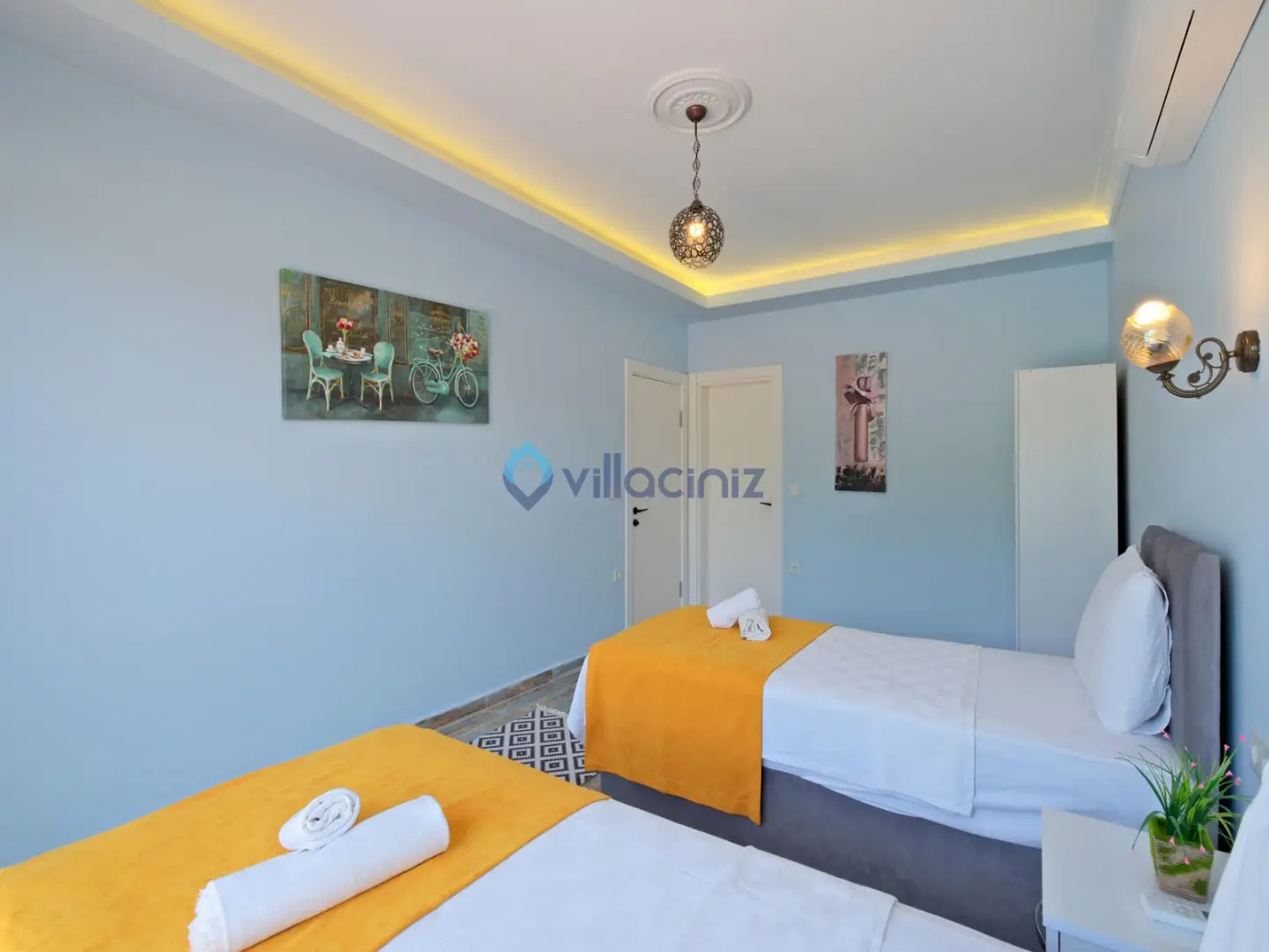 Yatak odası 2: 2 Adet tek kişilik yatak, klima, komodin, elbise dolabı, banyo ve tuvalet bulunmaktadır.