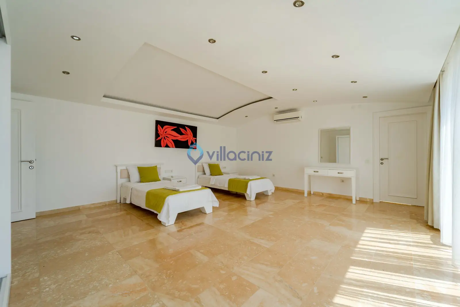 Yatak Odası 4: Suit doğa manzaralı odada 2 adet tek kişilik yatak, komodin, klima, makyaj masası, elbise dolabı, ebeveyn banyosu bulunmaktadır.