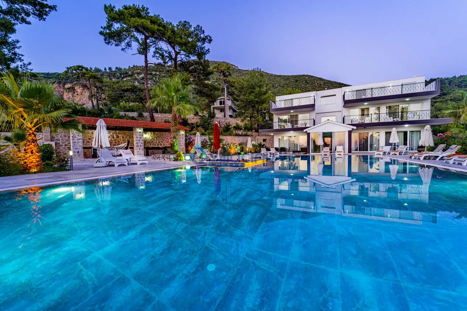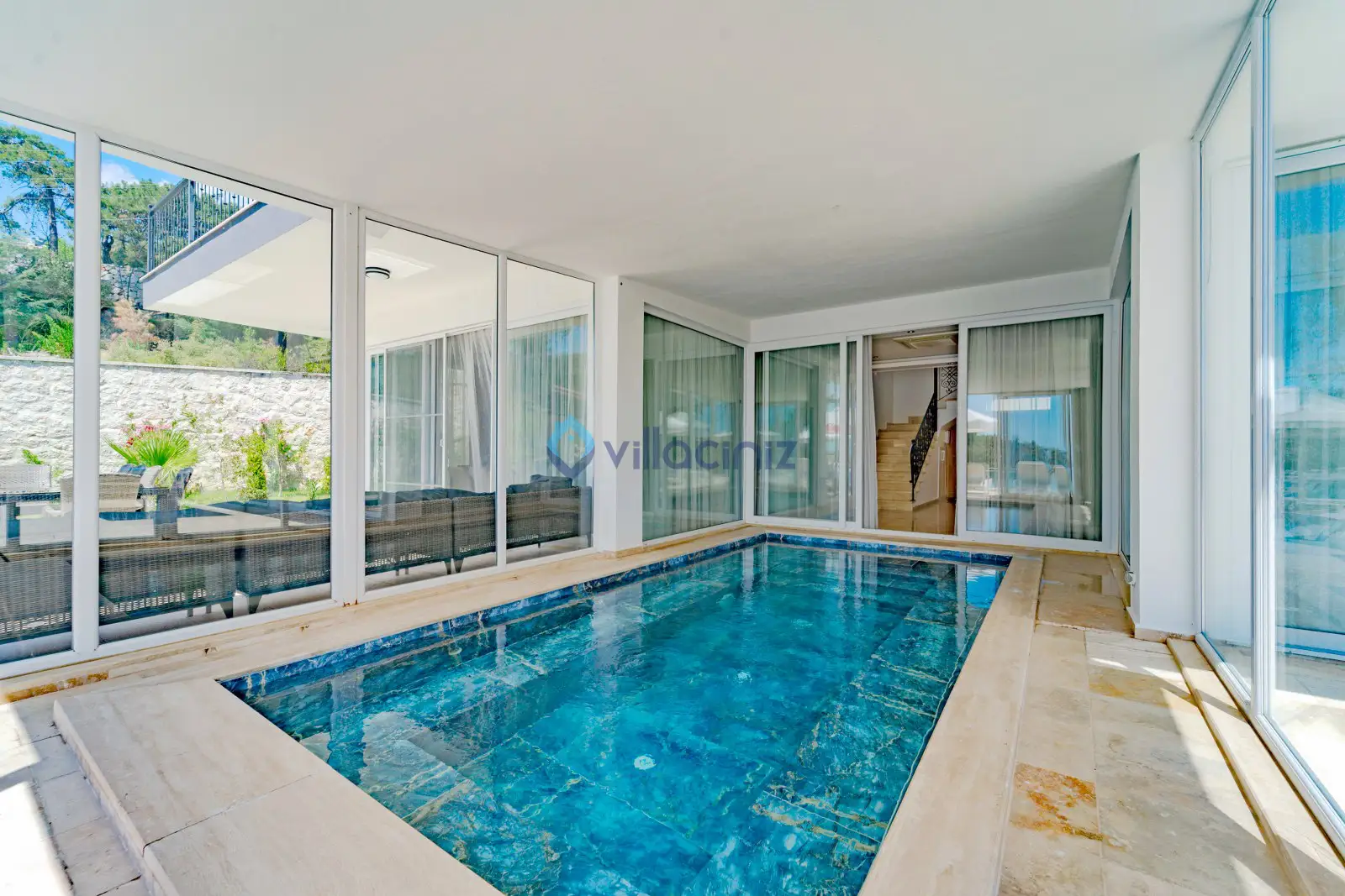 Kapalı ısıtma havuzlu geniş aile ve arkadaş grubu için dizayn edilmiş kiralık villa