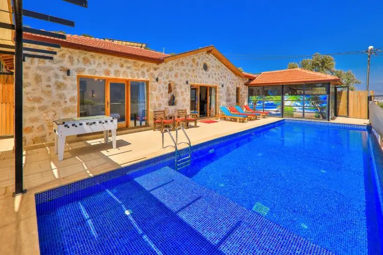 Villa Samet, muazzam doğa manzarasıyla ön plana çıkan villamız, doğal tas mimarisiyle dikkat çekmektedir. Villa Samet, Balayı çiftleri ve çekirdek aileler düşünülerek tasarlanmış, korunaklı havuzlu muhafazakar konseptte, 2 yatak odalı 4 kişi kapasiteli tek katli bir villadır. Misafirlerinin her türlü konforunun düşünülüp hayata geçirildiği villamızda özel yüzme havuzu, jakuzi, ısıtmalı Kapalı Havuz özelliği sayesinde, kış aylarında da konaklamaya elverişlidir. Villamız Kalkan merkeze ve Kalkan plajına 10 km mesafededir.