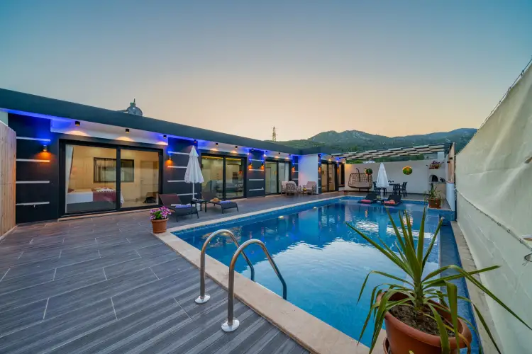Kalkan’ın ikizce mevkiisinde bulunan Villa Selyus, doğa içeresinde aileniz ile yapabileceğiniz, sessiz sakin huzur dolu bir tatilin adresidir. Villamız, 2 yatak odalı olup 4 kişi konaklama kapasitesine sahiptir. Oldukça modern ve lüks dizayn edilen villamızın havuzu korunaklı olup muhafazakar çekirdek aileler ve balayı çiftleri için uygun bir seçenektir. Ayrıca villamızın ebeveyn yatak odasında bulunan jakuzisi ile yılın sters ve yorgunluğunu üzerinizden atabilirsiniz. Sizler için herşeyin düşünüldüğü villamızda sizlere sadece tatilin tadını çıkarmak kalıyor.